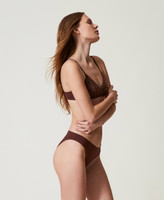 Einfarbige, asymmetrisch geschnittene Bikinihose mit Logoherz aus Metall an der Rückseite und Futter.