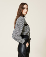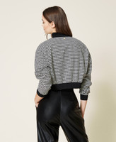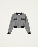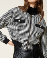 Bomberjacke mit Hahnentrittmuster, gerippten Details, Blindtaschen mit Kopf und Reißverschluss.