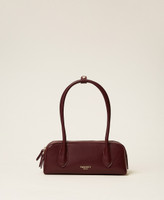 Bowling-Bag aus glattem Kunstleder in natürlicher Kalbsnappalederoptik. Das Modell verfügt über einen 2-Wege-Reißverschluss, röhrenförmige Henkel und Schulterriemen, die durch ein Riemchen befestigt sind, und ein Logo-Lettering aus goldfarbenem Metall auf der Vorderseite. Gefüttert und mit Innentaschen.