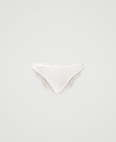Brazilian-Slip mit Vorder- und Rückseite aus bestickter Spitze mit Zackenrand an der Taille und herzförmige Logoplakette mit farblich abgestimmter Schleife an der Rückseite.