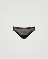 Brazilian-Slip aus Tüll mit Sticklogos, elastischem Logo-Taillenbund, filigranem Wellenrand am Beinausschnitt und Logo an der Rückseite.