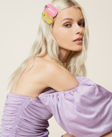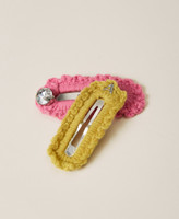 Haarspange aus der Actitude Collection mit gehäkelter Baumwolle, Strass an einem Ende und Schnappverschluss.