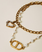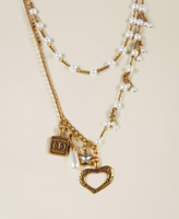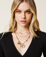 Zweireihige Halskette aus Kettengliedern mit Perlen und Charm-Anhängern und Karabinerhakenverschluss.