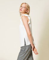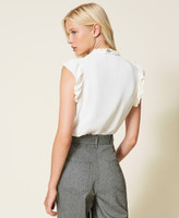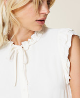 Gerade geschnittenes Hemd aus Viskosekrepp mit Schnüren und Volantbesatz an Hals und Ärmeln.