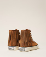 Hightop-Sneaker aus Kalbsleder mit Fransen, mittiger Schnürung und Gummisohle.