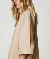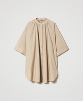 Maxihemd aus Baumwollpopeline mit Knopfverschluss an der Vorderseite, Raffung und Raglanärmeln in Dreiviertellänge.