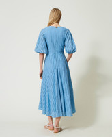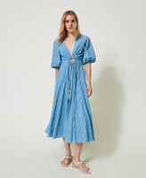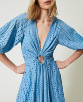 Maxikleid aus Baumwollstoff mit Lochstickereien, V-Ausschnitt- ellbogenlangen Ballonärmeln, Cut-out mit Zugkordel und Futter aus Baumwollmusselin.