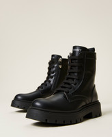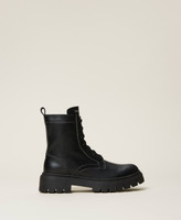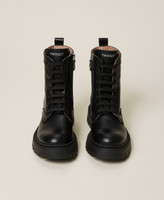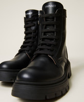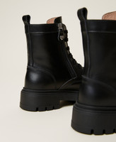 Schnürstiefelette aus Leder mit Seitenreißverschluss und Gummisohle.