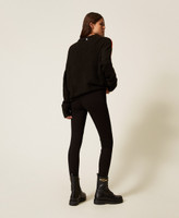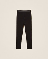 Hose aus Milano-Strick mit Details aus Satin. Das Skinny-Fit-Modell hat ein abgestepptes Gummiband an der Rückseite, einen verdeckten Reißverschluss an der Seite mit Verschlusshaken sowie eine Logoplakette aus Metall an der Rückseite.