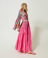 Dieses Maxikleid aus Baumwollpopeline, das auch als Rock getragen werden kann, darf im Reisekoffer einfach nicht fehlen. Die Oberpartie ist elastisch gesmokt, der Stufenrock sticht durch seine gerafften Stufen mit feinen Rüschen hervor und an der Rückseite prangt ein Logoherz. Ein Multitasking-Modell, das Sie mit auffälligen Accessoires ergänzen können.