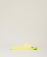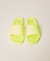 Badepantolette mit plastischem Logo im gleichen Farbton auf dem Steg.