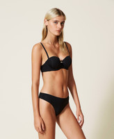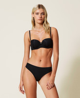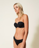 Mit nicht herausnehmbaren Cup-Einlagen wattierter Bandeau-BH aus Mikrofaser-Charmeuse mit Seitenstäbchen und abnehmbaren Trägern.