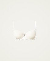 Mit nicht herausnehmbaren Cup-Einlagen wattierter Bandeau-BH aus Mikrofaser-Charmeuse mit Seitenstäbchen und abnehmbaren Trägern.