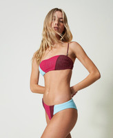 Mit herausnehmbaren Cup-Einlagen wattiertes Bandeau-Bikinitop aus Lurexgewebe im Color-Block-Look mit Seitenstäbchen.