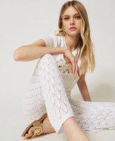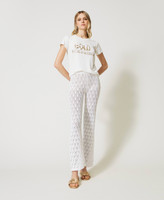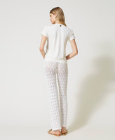 Lassen Sie sich den Charme dieser Hose aus elastischem Baumwollgewebe nicht entgehen, mit ihrer transparenten Lochstickerei, einem Gummizug in der Taille und eingenähten Shorts in Nudefarbe als Futter. Die Flare-Passform kennzeichnet dieses trendige Modell zum Tragen mit entspannter „décontracté“-Eleganz.