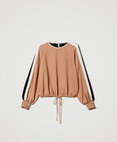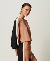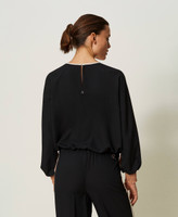 Bluse aus der Actitude Revive Collection aus Crêpe de Chine aus 51 % recyceltem Polyester mit Kontrastgalons an den Ärmeln und Tunnelzug unten im Saum.