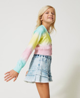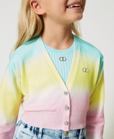 Regular-Fit-Cardigan aus elastischem Baumwollstoff mit Allover-Farbverlaufprint, Strasslogo und Verschluss mit Schmuckknöpfen.