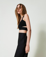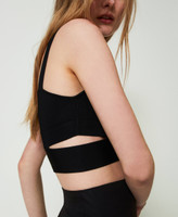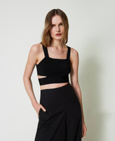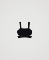 Crop-Top aus Viskose-Stretch-Gestrick mit Cut-outs an den Seiten, breiten Trägern und Logo an der Rückseite.