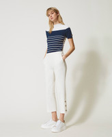 Cropped-Hose aus elastischem Milano-Strick mit Oval T-Logo-Knöpfen an der Unterpartie und seitlichem Reißverschluss.