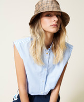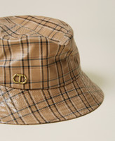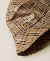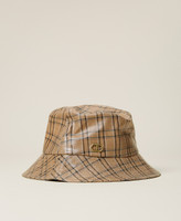 Innen verstellbarer Fischerhut aus technischem Gewebe in Lackoptik mit Karoprint und „Oval T“-Logo.