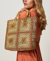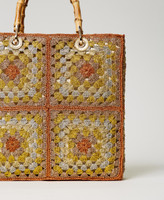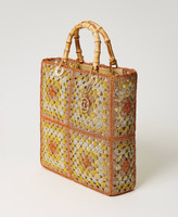 Von Hand gehäkelter Shopper aus verschiedenfarbigen Lurexgarnen mit zwei Henkeln aus echtem Bambus, Canvasbeutel mit Tunnelzug und „Oval T“-Logo-Charm.