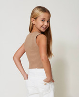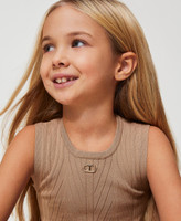 Mädchentop aus Viskose-Stretch-Mischung mit Rippenmuster, Rundhalsausschnitt, „Oval T“-Logoplakette und schlankem Schnitt.