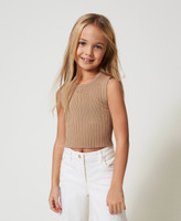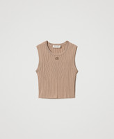 Geripptes Stricktop mit Oval T