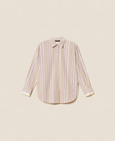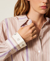 Hemd aus der Actitude Collection aus Popeline (20 % recycelte Baumwolle) mit Streifenprint und abnehmbarer Bindeschleife. Das Oversize-Modell hat lange Ärmel mit Blumenstickerei aus Stiftperlen an den Manschetten und abgerundete Seitenpartien. Das Modell gehört zum Conscious Program „Revive“ von Actitude by Twinset.