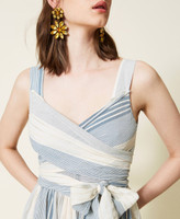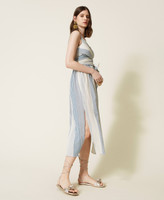 Maxikleid aus Gaze aus Baumwolle und Viskose mit farblich abgestimmten Streifen, Lurexfäden und überlappender Vorderpartie mit Bindegürtel.