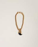 Metallkette mit Horn-Anhänger und Hakenverschluss.