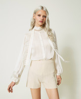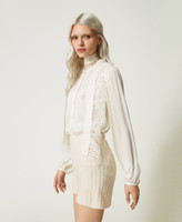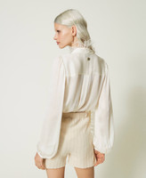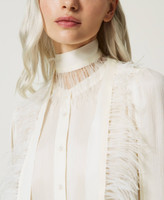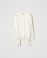 Hemd aus Krepon-Satin aus Viskose mit schmalem Leistenkragen, Knopfverschluss und passendem Gürtel mit Federn.