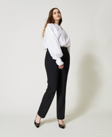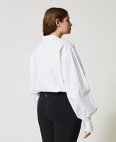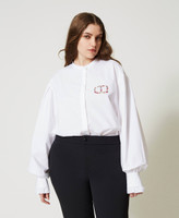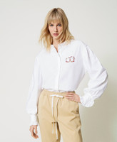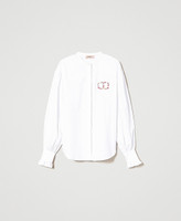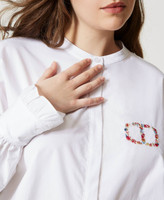 Hemd aus Baumwollpopeline mit mehrfarbiger Oval T-Logo-Stickerei und langen Ärmeln mit Manschetten und Volant.