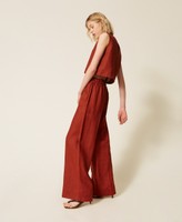 Hose aus Leinen mit aufgesticktem Logo