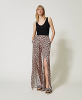 Hose aus Viskose-Satin mit Animaldessin, Gummizug in der Taille, Schlitze vorne, Schrägtaschen.