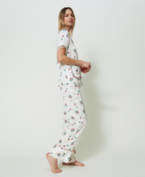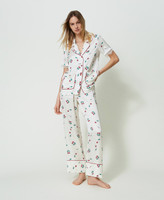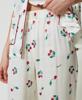Gerade geschnittene Pyjamahose aus Satin mit Kirschprint, elastischem Taillenbund und Paspelierung an der Saumnaht unten.
