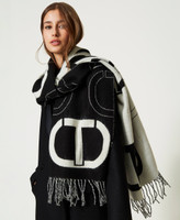 Stola aus Jacquard mit ganzflächigem „Oval T“-Motiv und Fransen an den Enden.