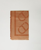 Schenken Sie Ihrem Stil eine individuelle Note mit diesem zweifarbigen Jacquardtuch mit Alloverdessin aus großen Oval Ts und ausgefransten Rändern. Perfekt zur Abrundung Ihrer Outerwear mit einem edlen Touch.