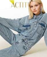 Weit geschnittenes Jeanshemd aus der Actitude Collection mit Stone-Wash, gerader Passe an der Vorderpartie, Pattentaschen mit dunkler Schattierung, Druckknöpfen.