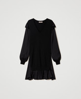 Kurzes Kleid aus Viskose-Stretch-Gestrick mit leicht übergroßem Schnitt und Jacquarddessin aus kleinen Tupfen.