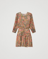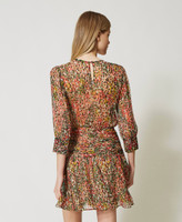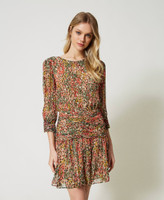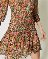 Kurzes Kleid aus Viskose mit Animalprint, lange Ärmel, Raffung in der Taille, seitlicher Reißverschluss.