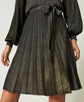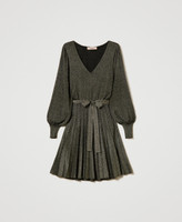 Kurzes Strickkleid mit Lurex und Plisseefalten