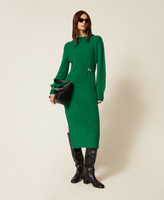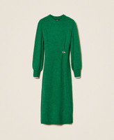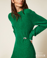 Maxi-Strickkleid aus der Kollektion Actitude mit gerafftem Detail an der Seite, das durch eine abnehmbare Schmuckbrosche gehalten wird. Locker geschnittenes Modell mit Trichterkragen, langen Ärmeln und einer Logo-Plakette aus Metall auf der Rückseite.