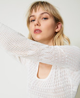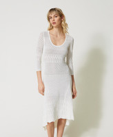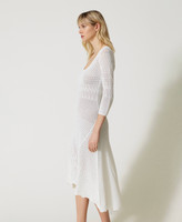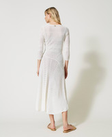 Maxikleid aus elastischem Viskosestrick in Spitzenoptik mit einer Mischung aus Handarbeit und Transparenzen, lange Ärmel, passendes Unterkleid.