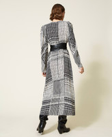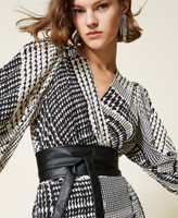 Locker geschnittenes Maxiwickelkleid aus Viskosekrepp mit Hahnentrittmuster, V-Ausschnitt und passendem Gürtel.