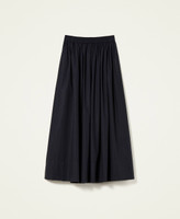 Locker geschnittener Maxirock aus elastischem Baumwollpopeline mit Raffung an der Taille, Seitenschlitzen und Taschen.