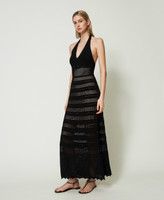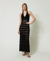 Maxistrickkleid in Spitzenoptik