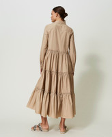 Maxikleid aus Baumwollpopeline mit Logoknöpfen, Hemdkragen, Taillennaht und gerafften Stufen.