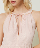 Gefüttertes Midikleid aus floral bestickter Chantilly-Festonspitze mit Tunnelzug im runden Halssaum und Tropfenausschnitt.