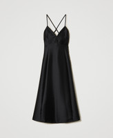 Midikleid aus der Actitude Collection aus technischem Twill mit längs verlaufenden Teilungsnähten am Rock. Das ausgestellt geschnittene Modell hat einen V-Ausschnitt, formschöne Triangel-Cups und am Rücken überkreuzte Spaghettiträger.