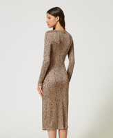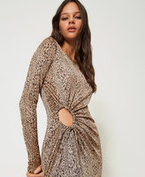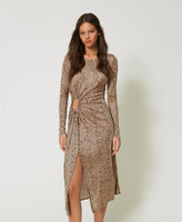 Midikleid aus Viskosejersey mit Animalprint, langen, hautengen Ärmeln und asymmetrischem Cut-out mit verstellbarem Tunnelzug.
